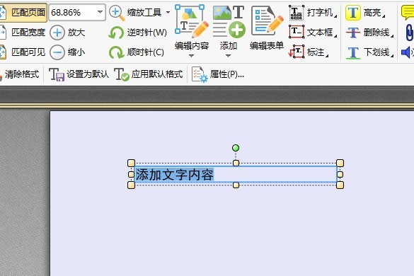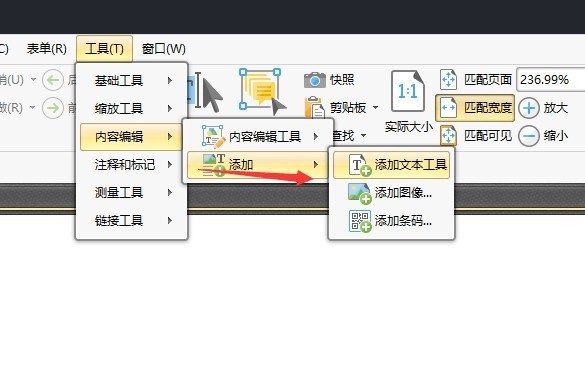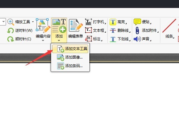3.在内容编辑选项中除了内容编辑工具,还有就是添加工具,点击添加工具中的添加文本工具,可以在文件中添加文字内容哦。