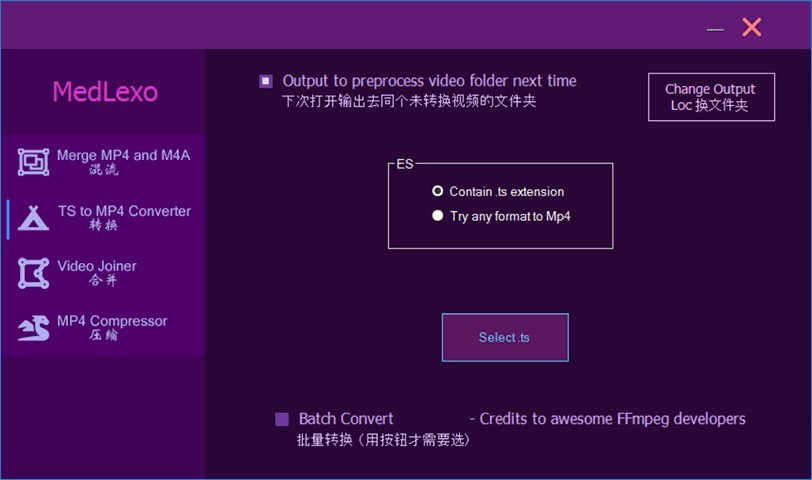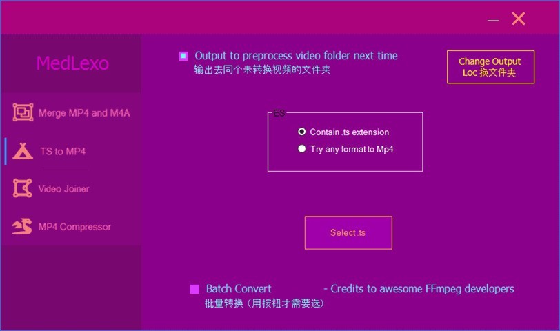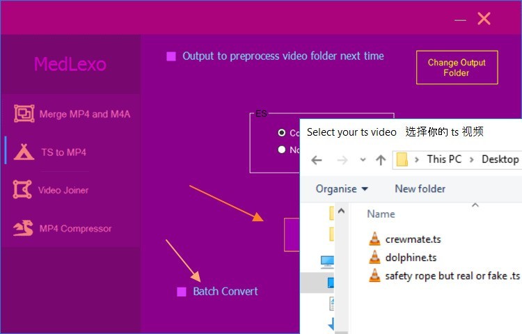 -如果要多个ts视频转换就打勾 【Batch Convert】才按 【Select ts】