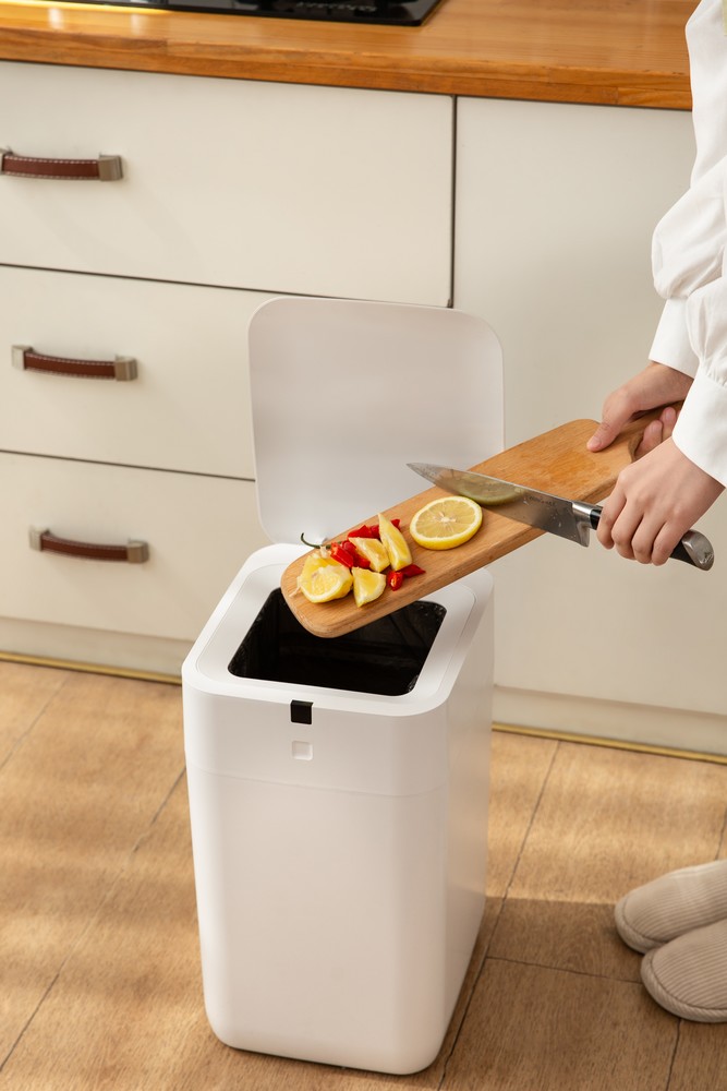 智能垃圾桶在厨房的图片展示