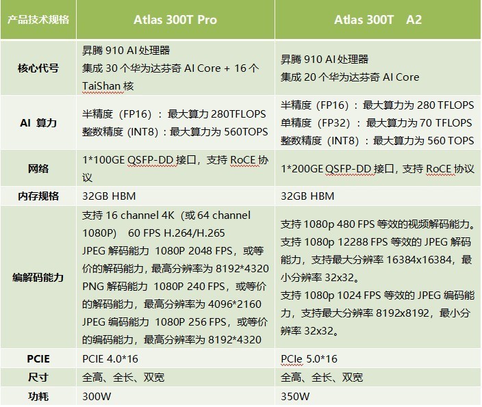 训练卡的迭代关系为Atlas 300T Pro升级到Atlas 300T A2。相比之下,Atlas 300T A2 性能特点: