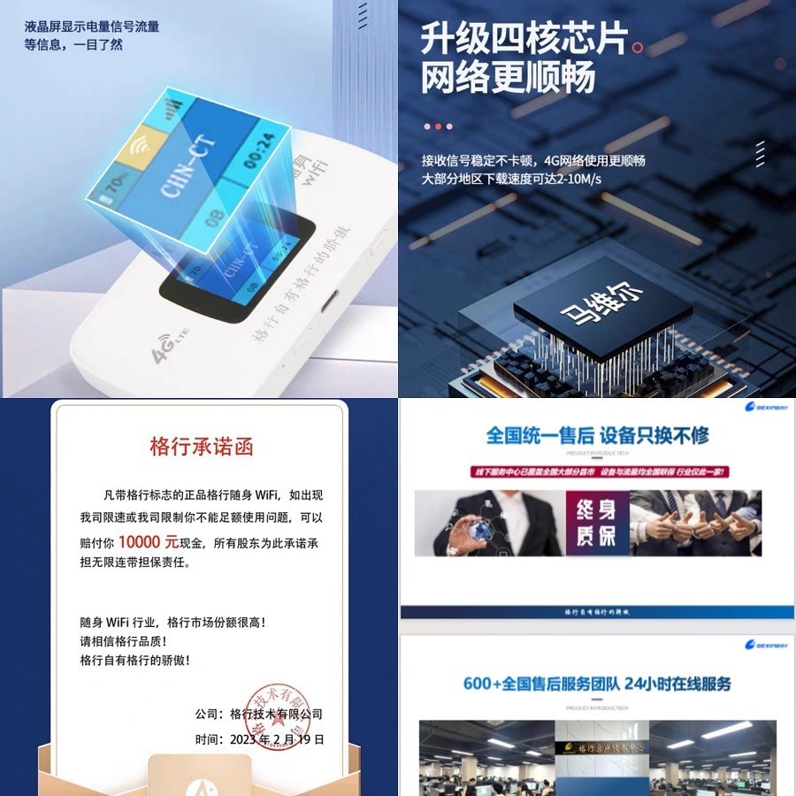 格行随身wifi有双网,三网设备,支持电信,联通,移动三大运营商。走到哪哪有网,虚量限速拍付一万元承诺函,采用先进的马维尔芯片,信号稳定,网速流畅。设备与流量均全国联保,统一24小时售后,5年质保,只换不修!各大平台店铺均展示3C认证的证书。主要是用户评价也是非常高的,金杯银杯不如老百姓的口碑!