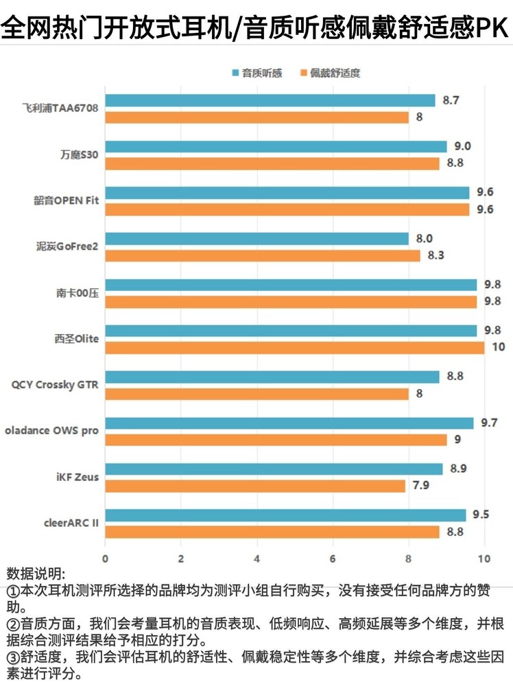 鉴于此种情况,我为大家整理了一些专业机构测评的热门开放式耳机数据,如下图所示,希望能为你们提供一些数据参考,同时我也根据自己多年的耳机选购经验为大家推荐几款专业优质的开放式耳机,希望能对大家有所帮助。