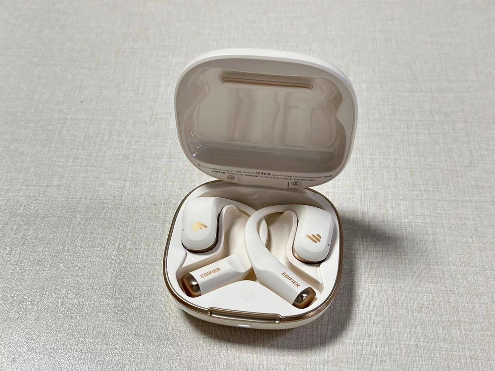 漫步者在国内算是知名品牌了,这款耳机是之前Comfo Fit升级的第二代产品,耳机充电仓手感很好,顶部镶嵌了一枚香槟金色的品牌金属Logo,四周金色镶边显得高级。