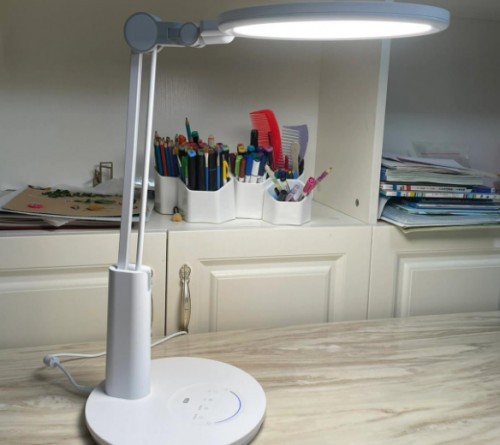 欧 普元悦2s在几款台灯中可以说是偏向于小巧的一面,底座的直径仅仅保持在了17.8cm,使用过程中只需要放在桌面左上角即可,并且双轴灯臂的设计能够进行多角度的自由调节,此外灯头里部的灯珠数量是保持在了63颗,对于其他几款来说数量是偏低的,但好在照射的中心照度能够勉勉强强的达到1582,光线开启后差不多能够把一张90~100cm的桌面照亮。