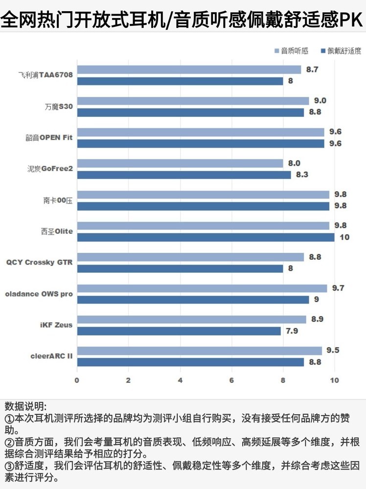 近年来,开放式耳机凭借其独特的开放式声学设计,给用户带来了动态空间的音质享受。在佩戴等方面也带来了一定的舒适度。然而,面对满目的耳机品牌,新手小白往往会不知道如何挑选。那如何选择一款适合自己的产品呢?我整理了一些专业机构对开放式耳机的深度测评数据,并绘制成图表,希望能为大家在选购时提供一些有价值的参考。同时,我也结合个人使用体验,为大家推荐了几款性能出色的开放式耳机,希望能为正在寻找心仪耳机的你提供一些帮助。