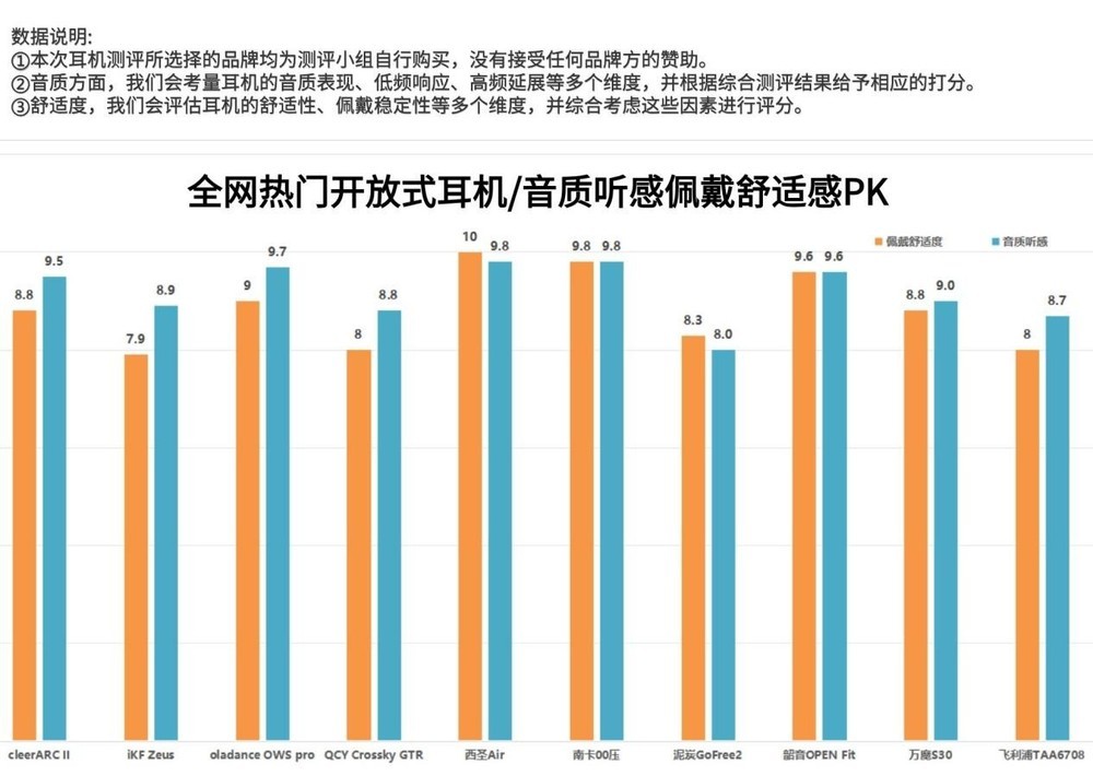 现在开放式耳机凭借其较高佩戴舒适度和安全性成为了很多人的听音首选设备。但要从众多品牌和型号中,选择到一款音质表现出色的开放式蓝牙耳机并不是一件容易的事。挂耳式耳机哪个牌子好?笔者近期特意去收集了专业机构对热门开放式耳机的测评数据报告,并以图片的形式分享给大家。如果大家还需要更直观的参考意见,我也将根据个人使用感受分享五款体验感较好的耳机,这五大口碑产品,盲入不出错。