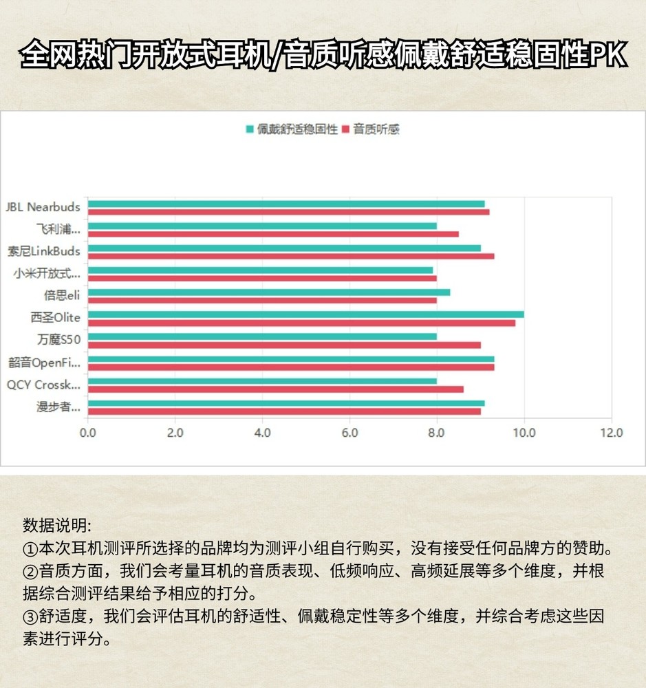 在分享之前,我整理了一些专业机构实测的百元级开放式耳机的实际使用效果图,希望能帮助大家选到合适的耳机。